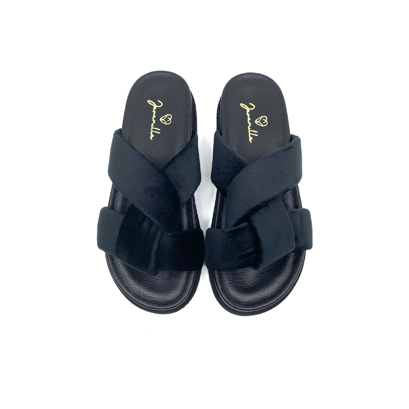 Uno de nuestros best sellers para caminar como en las nubes en su suela antideslizante y ergonómica con una altura de 3 cm atrás y 2 cm adelante, plantilla en cuero de confección y capellada acolchada en nuestro velvet súper suave, lavable y resistente. No te las vas a querer quitar! Tus mejores aliadas para estar en casa, salir casual y llevarlas de viaje.