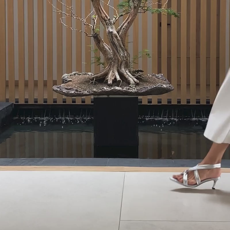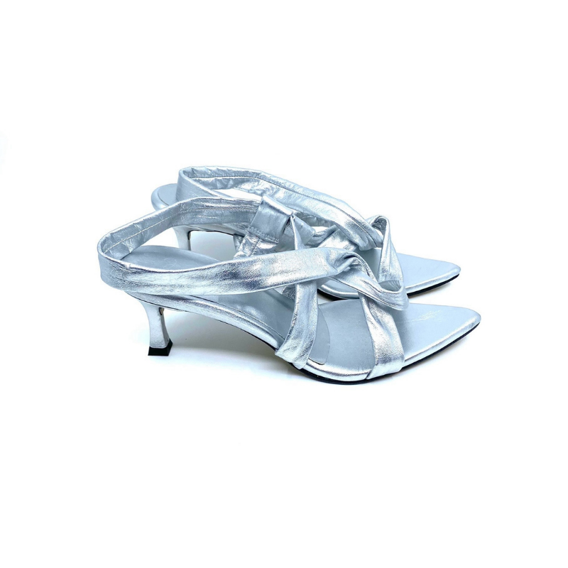 Sandalias refinadas y estilizadas en cuero de confección terminadas en punta. Con tacón puntilla de 5.5 cm.