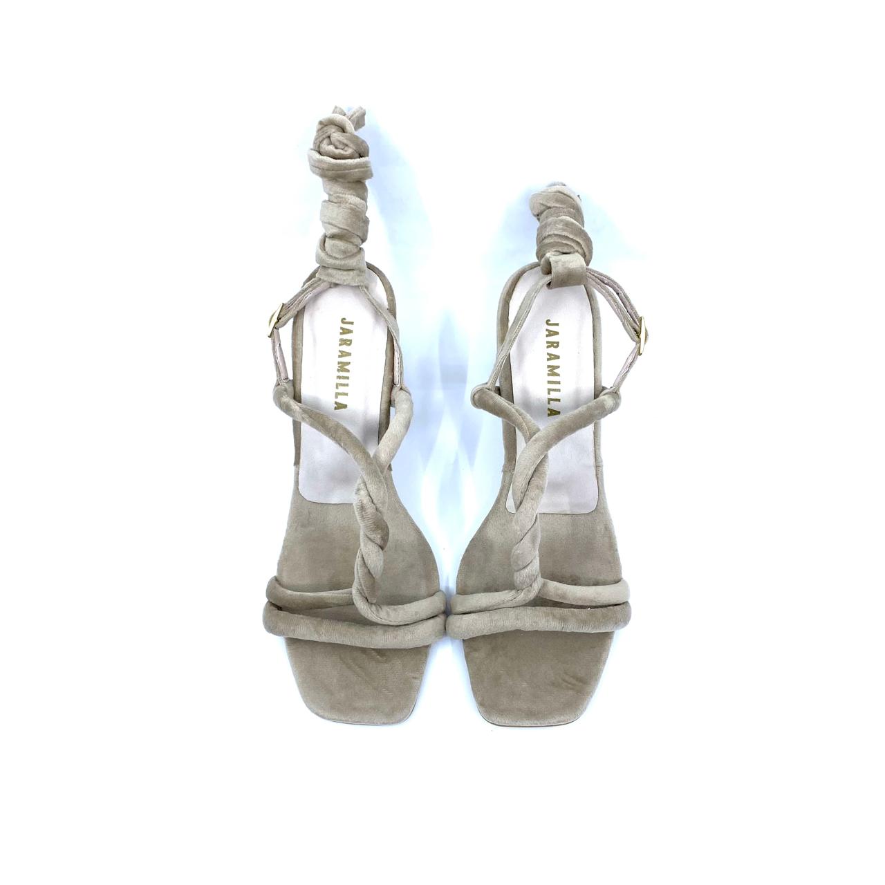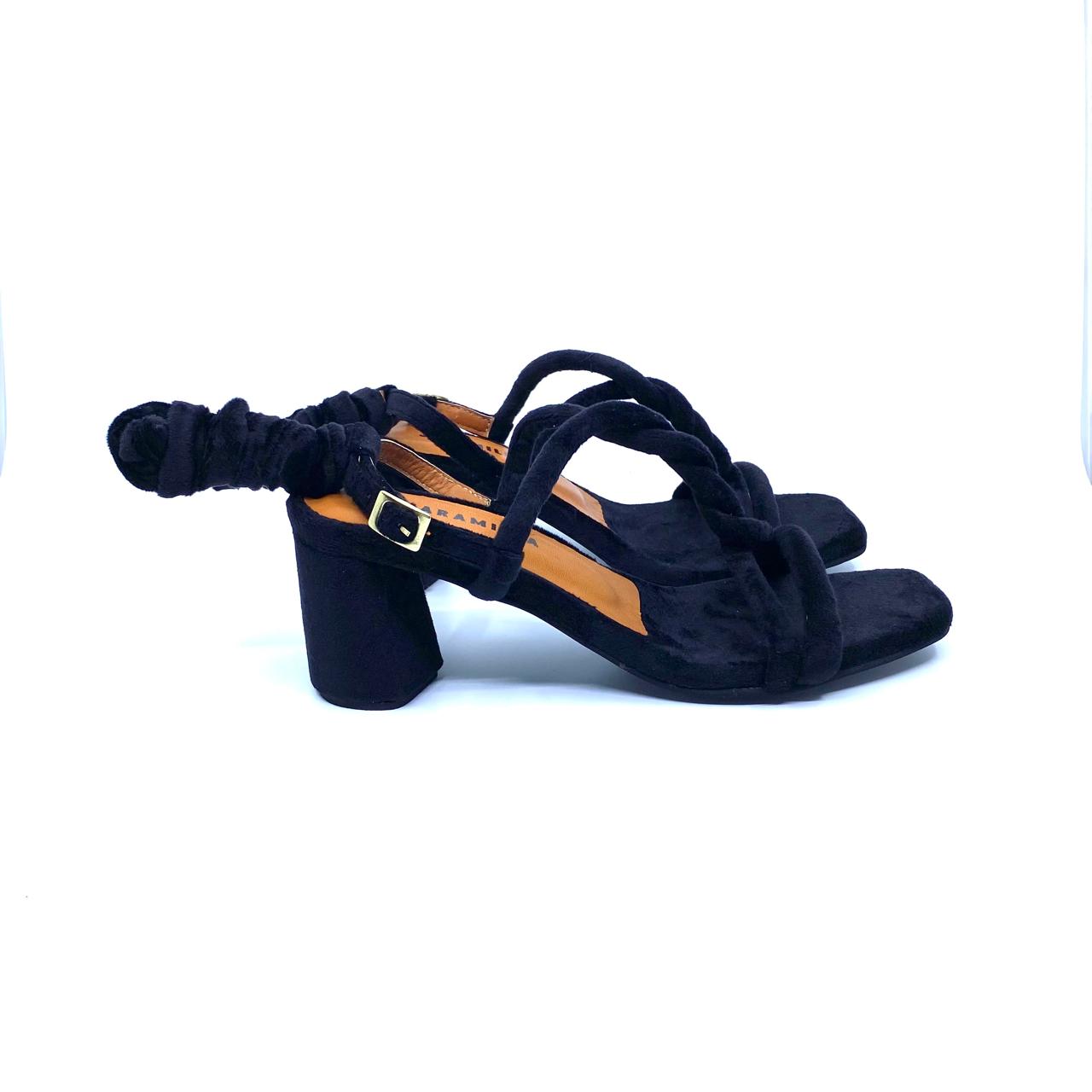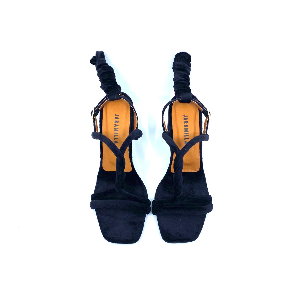 Zapatos perfectos para vestidos, pantalones largos y tus mejores aliados en las fiestas! Sandalia con tacón de 5.5 cm atrás y 2 cm adelante, altura proporcional 5.5 cm. Capellada en velvet, lavable, suave y resistente, con plantilla en cuero de badana fresco y transpirable. Úsalos de dos formas: con la trabilla tradicional o cordón para amarrar al tobillo, te entregamos las dos opciones, tu escoges!.