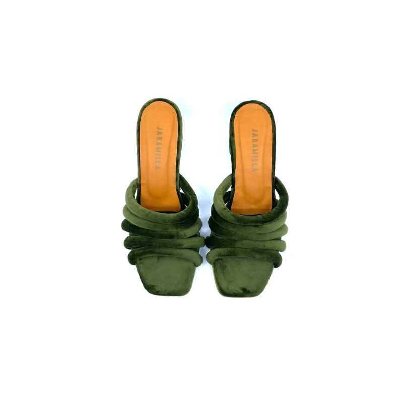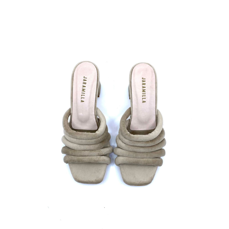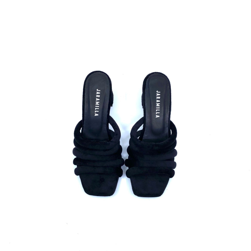 Nuestra sandalia de tacón 5.5 cm destaca por su diseño exclusivo que crea un efecto visual tipo arcoíris gracias a sus tubos. Confeccionada en velvet lavable, suave y resistente, brinda una textura única que eleva cualquier look.