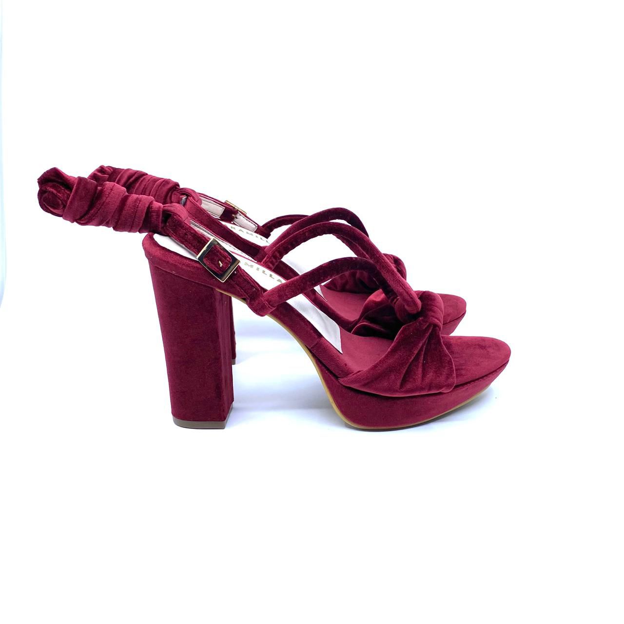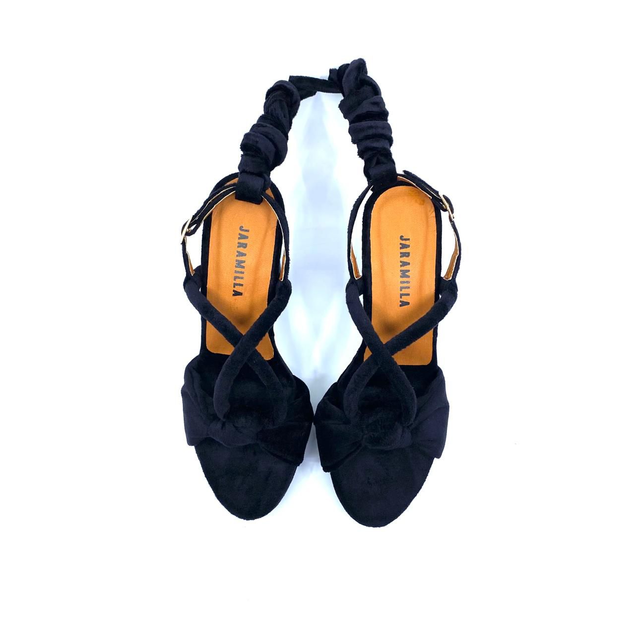 Zapatos perfectos para vestidos, pantalones largos y tus mejores aliados en las fiestas! Sandalia con tacón de 8.5 cm atrás y 2 cm adelante. Capellada en velvet, lavable, suave y resistente, con plantilla en cuero de badana fresco y transpirable. Úsalos de dos formas: con la trabilla tradicional o cordón para amarrar al tobillo, te entregamos las dos opciones, tu escoges!.